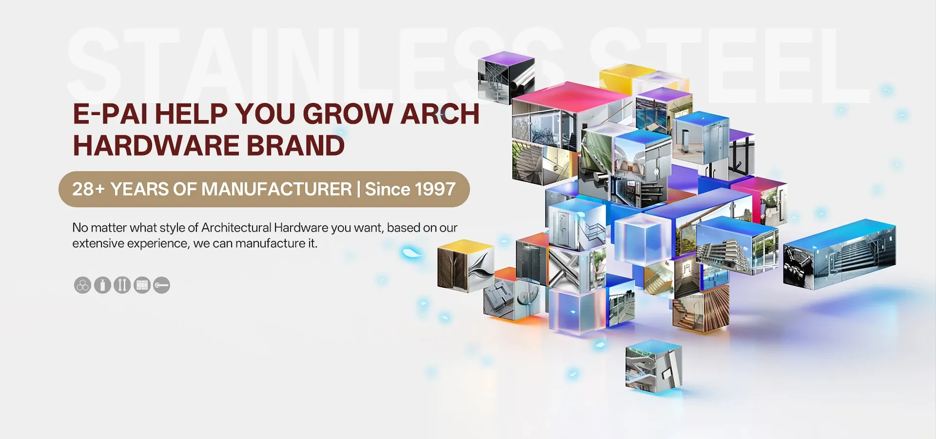 E-PAl Hardware, established in 1997, is a Stainless Steel Architectural Hardware manufacturer with 28 years of experience who have served more than 100 brands and keep more than 95% repurchase rate. E-PAI's products are green environmental protection. Products pass the CNAS10 test, antibacterial patent technology, a number of staircase railing installation technology patents, door handle structure patents, and the company through the ISO 9001-2015 management system.